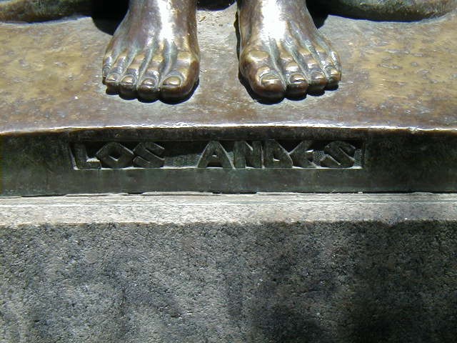Sobre una base de granito gris martelinado, se levanta el monumento a “Los Andes” representado por tres figuras indígenas, ejecutadas en bronce, que simbolizan los “TRES ANDES”, la figura central al de la zona de Cuyo (raza araucana), a su derecha el del Norte (raza calchaquí), y a su izquierda, el del Sud (raza ona).