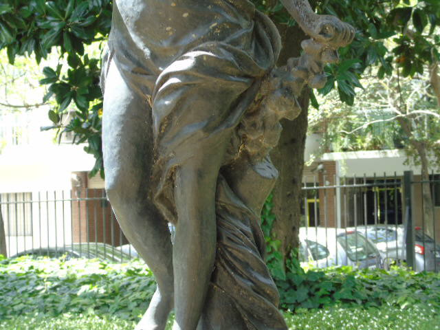 Estatua de piedra pulverizada, sobre base de mampostería. Representa un desnudo femenino con parte de su cuerpo cubierto con un velo; se apoya sobre un tronco florecido, su cabeza se halla orlada por una corona de flores. Esta obra es reproducción de la que se encuentra emplazada en el Museo del Louvre, en Paría, Francia.