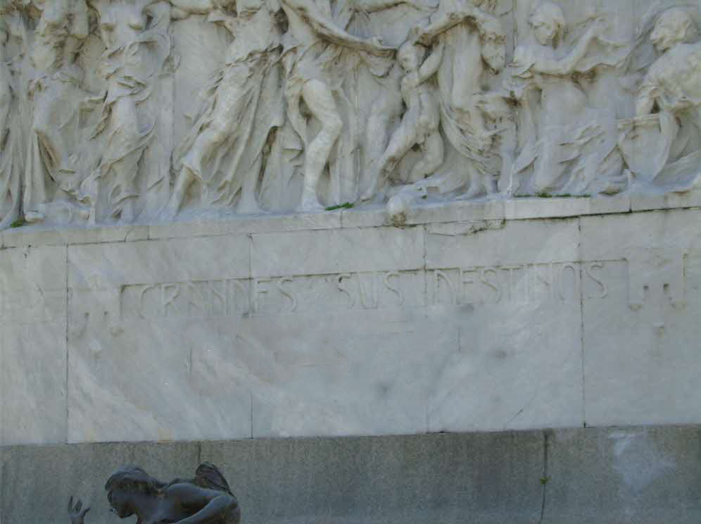 Este monumento en el año 1914 ya estaba emplazado con excepción de los cuatro grupos escultóricos de la base que fueron emplazados en el año 1927.