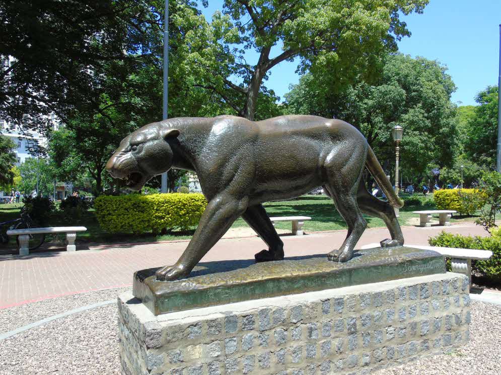 Obra de bronce, representando al denominado “Tigre americano”.