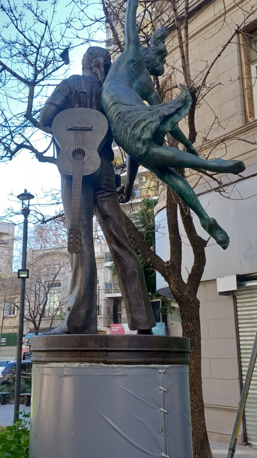 Obra de bronce. Muestra a Leonardo Favio flanqueado por una musa inspiradora, y busca sintetizar la relación que el realizador tuvo con el cine y la música.