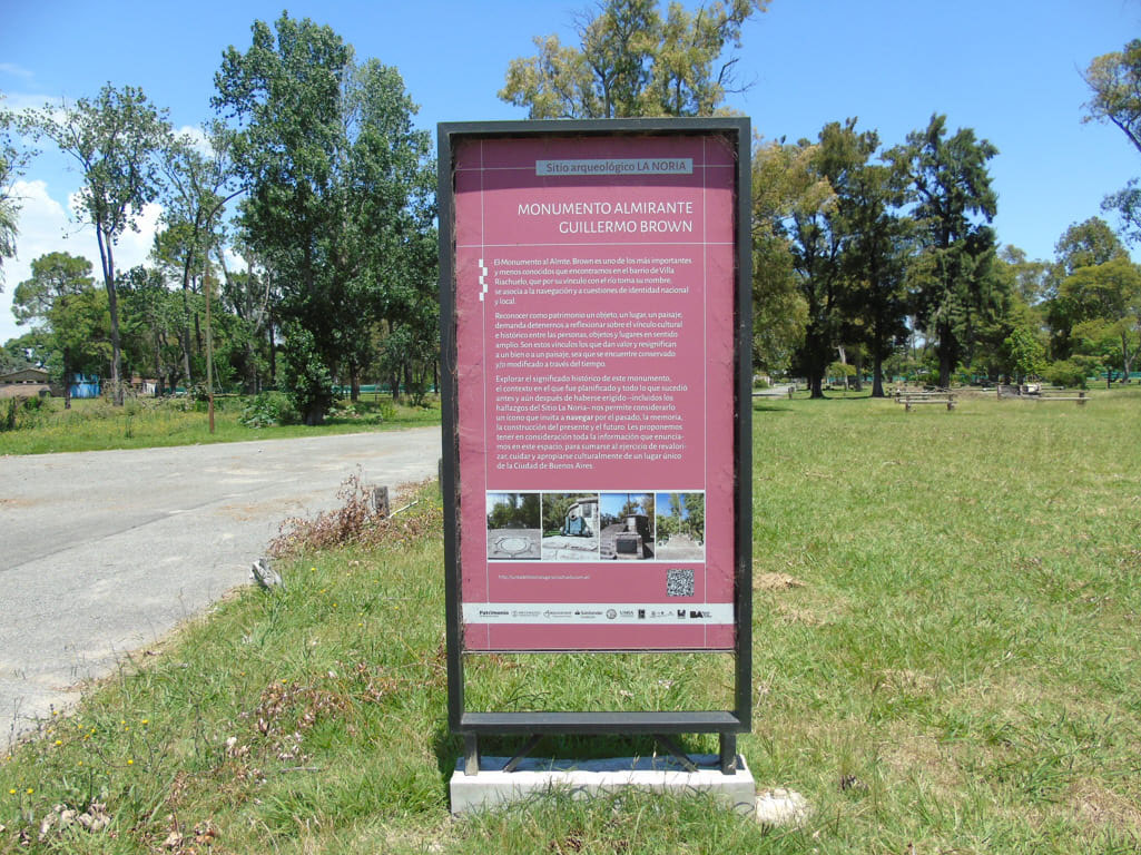Así lo describe la “Revista Del Mar” del Instituto Nacional Browniano, al registrar el evento inaugural: “El Monumento que honra la memoria del Almirante Guillermo Brown, cuya escalinata (franqueada por réplicas de los cañones de su nave capitana, la fragata “25 de mayo” y placas de bronce que recuerdan sus combates) conduce a un mástil marinero con propeo. Por detrás está la puerta de bronce, con la fragata “Hércules” en relieve, la cual da acceso al templete en donde se exhiben maquetas de sus buques y, en una vitrina, junto a la bandera nacional, la enseña que enarboló en el Combate de Los Pozos” (N.o 61 a 68)
